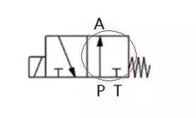 6、一般,流体的进口端用字母P表示,排出口用字母T表示,而阀与执行元件连接的接口用A、B等表示。